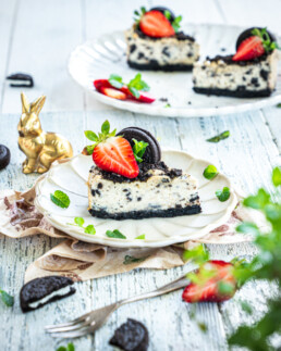 Egal ob zu Ostern, zum Frühlingsbrunch oder einfach als Sonntagskuchen – dieser vegane Oreo-Cheesecake passt einfach immer. Und weil er sich super vorbereiten lässt, eignet er sich auch perfekt für Gäste oder zum Mitbringen.