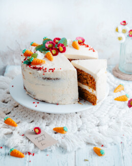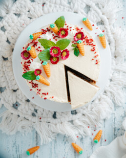 Weil der Kuchen gebacken wird, hat er eine wunderbar feste Konsistenz, bleibt aber dank veganem Joghurt und Frischkäse herrlich saftig. Und das Beste: Er kommt ganz ohne tierische Produkte aus, ist aber trotzdem ein voller Genuss – auch für Nicht-Veganer.