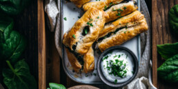 Blätterteig Rollen gefüllt mit Spinat, Kartoffeln und schwarzen Bohnen
